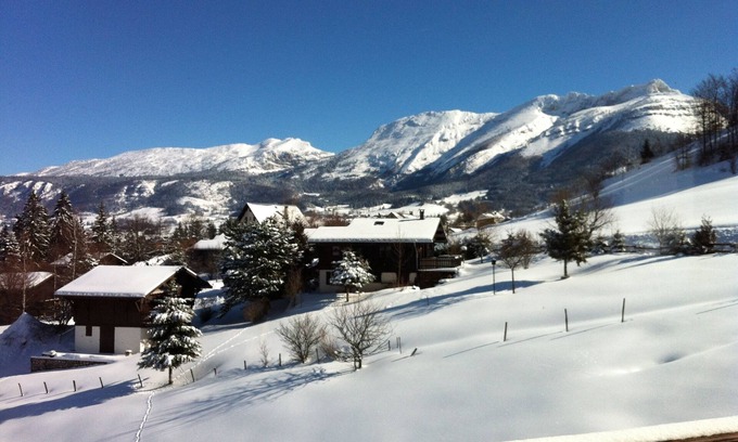 60m2 apartment on the ground floor with open views of the surrounding mountains. Located 5 minutes from the ski slopes, 5 minutes by car from the alpine ski area. This haven of peace "vertaco" is ideal for a weekend or a week of serenity "sport" or "family".