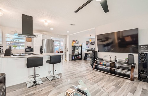 Welcome to your home away from home. Newly remodeled 2 bedroom 1 bath POOL home with open kitchen/living perfect for entertaining. The home is Located in a quiet neighborhood around 5 miles to our local beaches but still centrally located near plenty of shopping and restaurants. You and your guests will enjoy the entire place to yourself. Take a plunge in the sparkling pool, relax under the covered porch or head out to explore the town. This home has it all.