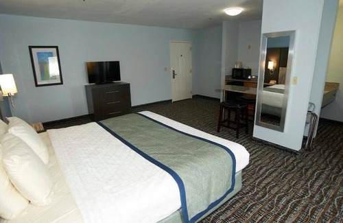 This comfortable One-Bedroom Suite offers one King-size bed in an oversized room alongside a kitchenette with a microwave and a small fridge (no stove), countertop with stools, desk and chair, single sofa chair, a cable TV and more. FEATURES Free Wi-Fi Comfortable bedding TV with cable channels Microwave and mini refrigerator Telephone with voicemail Alarm clock and radio Hairdryer, iron and ironing board Shower and bathtub Heating and air conditioning Wake-up and maid services Deposit Policy: All Reservations Require Credit Card Deposit of 1 night of stay due at time of booking.