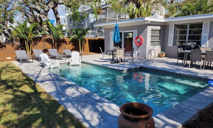 ONLY 2 WKS LEFT IN AUG 5 Min walk to Beach & Village, Private Pool,On the Canal has 4 Bedrooms , 2 Bathrooms, and max occupancy of 8 people. The minimum rental for this property is 1 nights, but this can change depending on the season you plan on staying. Previous guests have given good rated it, and VRBO labeled it a top-rated Cottage because of the excellent services rendered by the owner or manager of this Cottage, and has consistently provided great experiences for their guests. Most families or guests that use it recommend it to their friends and some of them are repeat guests. Cottage has a friendly neighborhood, and the Siesta Key has interesting places to visit. If you want to learn more about the Cottage in Siesta Key, such as places to visit and things to do nearby, you can check below to learn more.