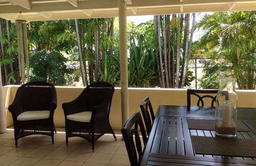 The kitchen is well fitted out and provides all the amenities and equipment for an easy self catering holiday. The kitchen leads out onto a large, attractive alfresco, covered dining area comfortably seating 6/8 people. This patio is surrounded by a private tropical garden.