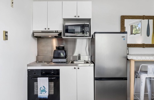 As you enter, you'll instantly feel in “vacation mode” - Crisp Whites and Nautical Blues are welcoming, and you’ll love the tasteful Nautical Decor throughout. Each Room is beautifully furnished and appointed, and each has its own Kitchenette equipped with all you need to make mealtime a bay breeze! It is also one of the few here at the Inn that actually has an Oven - and Assateague Inn 100-2R has TWO!