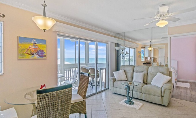 The condo, on the 4th floor, provides views of the water( Bay and Gulf) from bedrooms, dinette and lanai. What a wonderful way of starting your day in such beautiful surroundings. The Gulf view is perfectFor cocktails.