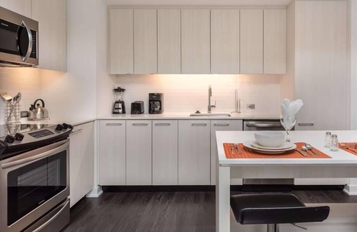 Whether your days are filled with meetings, family visits, or tours of D.C.’s most popular attractions, you’ll undoubtedly work up an appetite. If a casual night at home is in the cards, take advantage of the stunning chef’s kitchen and whip up a delicious meal. The premium stainless steel appliances include a full-size fridge and freezer, electric stove, oven, microwave, and dishwasher. As for the drawers and cabinets, They're fully stocked with the essential cookware and bakeware to do so! Don’t feel like cooking? You’ll find a mouthwatering array of restaurants at Reston Town Center.