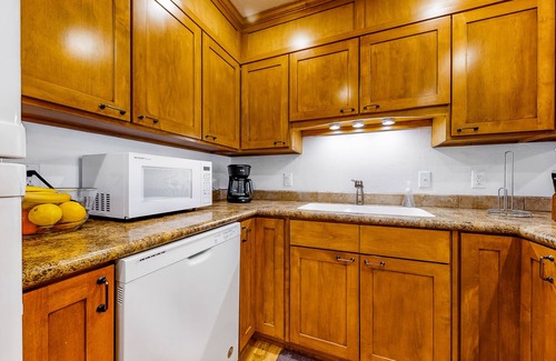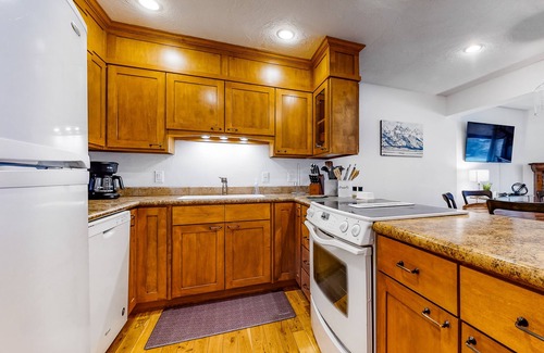 Whether you're visiting to ski the slopes to the west in winter or to explore the stunning Tetons in summer, this inviting two-story condo is your perfect gateway to year-round adventure. Whip up everything from quick snacks to gourmet meals in the well-equipped, galley-style kitchen, and gather around the dining table for six—ideal for family dinners or game nights. The cozy living area features a comfortable sofa, an electric fireplace to set the perfect ambiance, and a cable TV for relaxation. Step outside to the furnished patio, where you can unwind and enjoy the outdoors.