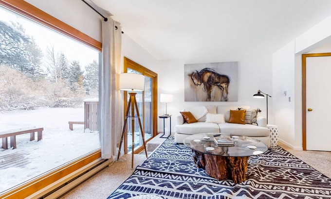Open and inviting, two-story condo with full kitchen, patio, and wildlife views is located in Jackson Hole. Open and inviting, two-story condo with full kitchen, patio, and wildlife views provides accommodation, featuring Parking, TV, Security/Safety, among other amenities. This Condo features Parking, TV, Security/Safety, to make your stay a comfortable one.