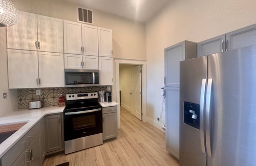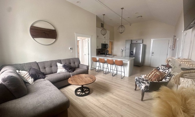 This fully remodeled apartment is located in the historic Opera House on the triangle in Kemmerer. The loft style one bedroom apartment has full laundry, full kitchen, and an on-suite bath. The apartment has downtown views that overlook triangle park and the historic downtown district. The apartment is walking distance to coffee, shopping, the visitor's center, the original JC Penny store and museum, bars, and grocery shopping.