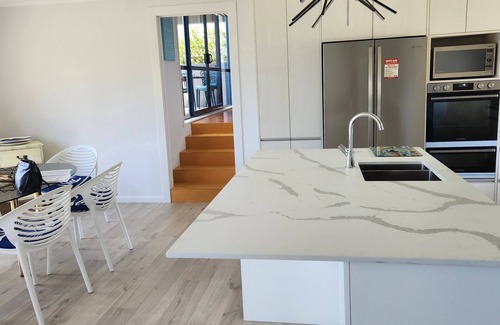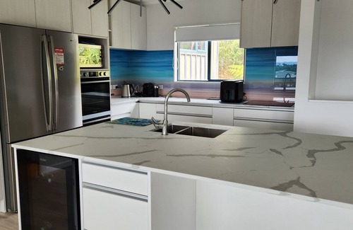 North facing 3 level fully furnished holiday home with fabulous views of the Mercury Islands. Two minutes walk from the beautiful sandy beach. Excellent fishing and diving spots minutes away. Great walking tracks nearby to take in the wonderful scenery. A great location for all, whether it is time away relaxing with family and friends soaking up the casual beach atmosphere of Opito Bay or serious fishing and diving time out around the Mercury Islands. A paradise for both kids and adults alike.