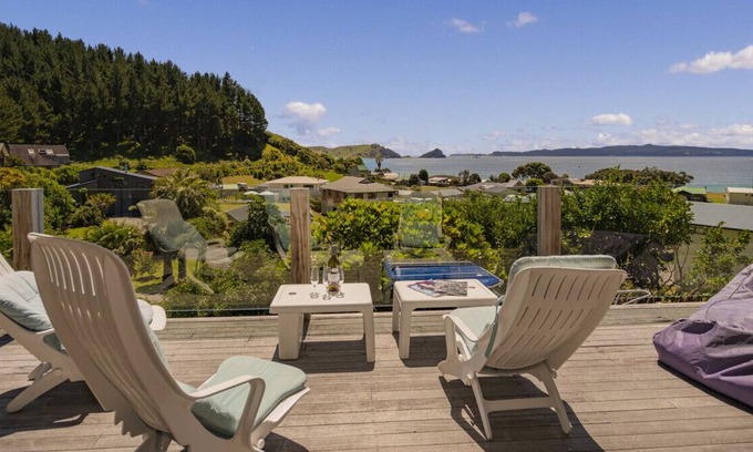 Just three minutes to the beach, start the morning with a dip at safe sandy Opito Bay Beach, before gathering the group for a big brekkie on the BBQ Kiwi style - hash browns, bacon and eggs mm-mm! While the kids are on dishes duty (it's the Kiwi holiday way!), relax on the sundeck to work on your tan, book in hand.