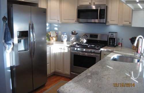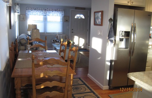 Four bedroom, 2 bath beautifully furnished home. New appliances, granite counters and baths, central air ,WiFi, DVD, flat screen HD TV's, washer, dryer, 4 ceiling fans, vaulted ceiling in family room leading to slider onto raised deck, complete with table, chairs and umbrella. Ready for cocktail hour?