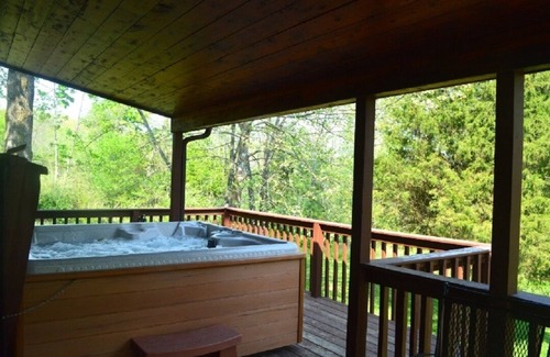 This cabin has a private hot tub out on a covered deck overlooking the woods. Hot tub will seat 5 people. To ensure cleanliness and the best quality and experience for our guests, hot tubs are emptied, cleaned and refilled with fresh water and chemicals after each reservation. This process can affect the temperature of your hot tub upon arrival. Your hot tub may not reach the desired temperature until later in the evening, on the day of your check-in. If the temperature is not rising within the span of a couple hours, please contact the office and ask for maintenance assistance.