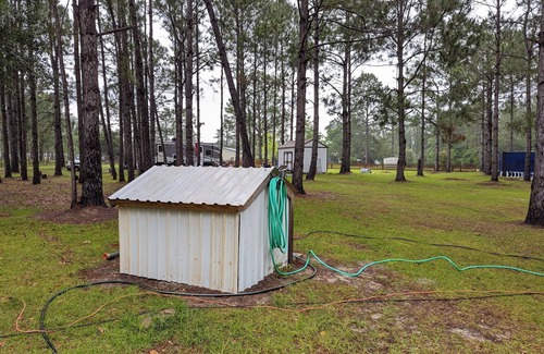 Beautiful camping area on a secluded, safe, 3 acre, sandy, wooded lot. Access to: Porta jon toilet, solar outdoor showers and water. Fifteen mins from Gulf Shores, Al. Minutes from Pirates Cove and Barbers marina. Parking and pets allowed on leash.