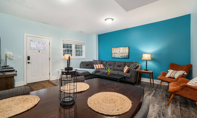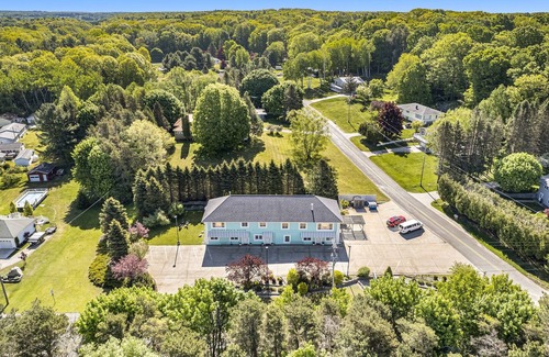 Welcome to Orchard Beach House Unit #2! This sweet main floor, middle unit is decked out in beachy blues to inspire dreams of the Lake Michigan shoreline just across the street at Orchard Beach State Park. And as one of four separate units in the building, it’s perfect for families or groups that want to get together at the beach.