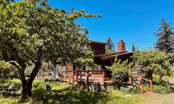 Welcome to this nature and fruit tree lover’s paradise! This charming farmhouse is set amongst the trees of a two acre apple orchard on beautiful Camano Island. A unique retreat that offers a blend of rustic charm and modern convenience making it an ideal getaway for families, groups, couples, and friends. Come to relax or choose to explore, there is something here for everyone. Our place is equipped for both long or short stays to make your holiday one to remember.