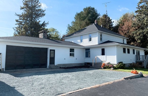 Welcome to our home in the heart of Leelanau’s wine and cherry country! Historic 40-acre property features panoramic orchard vistas and turn-of-the-19th century barn. Our farmstead is perfectly located between Sutton’s Bay and Traverse City, within easy driving distance to nearby beaches, golf clubs and wine tasting. The popular TART trail runs just 1000 feet west of our property. Great for all seasons—skiing, XC skiing and even winter tubing just a short drive from our property. New for 2024- garage door has been replaced and garage is now available for use.