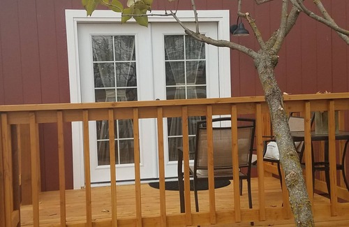 You'll have a 8'x10' Deck with table & chairs... the perfect place to have some quiet time, read, work or relax, kitchenette, King Bed, private bathroom, and 32"