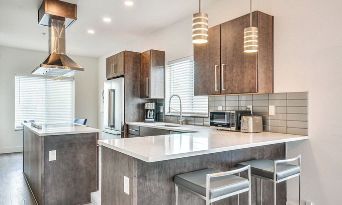 Experience a unique blend of relaxation and exploration at this 1-bedroom, 2.5-bath vacation rental in The Dalles, Oregon! This charming townhome brims with home comforts like a Smart TV, a well-equipped kitchen, and an inviting balcony showcasing mesmerizing views of the nearby river and mountains. Take a leisurely stroll on the riverfront or head to the beautiful Klindt's Cove and the thrilling Wonderworks Children's Museum. Then, snuggle up with a beloved pet in the cozy living area!