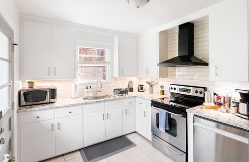 This charming spot is located in a quiet, tree-filled neighborhood, a 5-minute drive from UVA, Charlottesville’s Historic Downtown Mall, and the best local shops and eateries. Comfortable design and modern touches await you in this freshly renovated house. Keypad entry and a convenient array of modern amenities (organic, bamboo, and recycled) make for a care-free stay and the perfect retreat for your visit. Welcome.