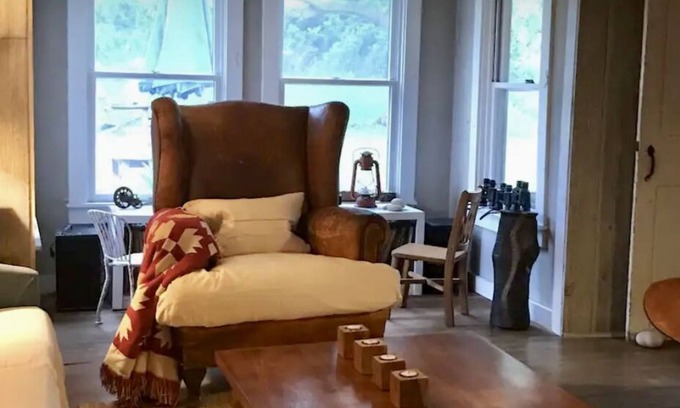 Cozy and relaxing farmhouse with exposed hand hued beams. Full kitchen, dining room, living room, vintage country style furniture. Spectacular peaceful patio and lawn, comfortable outdoor furniture, and grill. So isolated yet close to town.