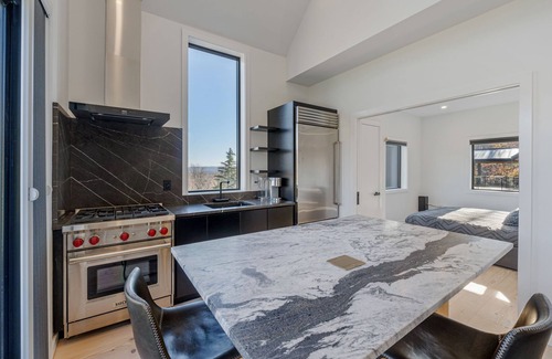 Welcome to the Orso Blu Guesthouse at Orso Blu Farm, a working lavender farm in the heart of Crozet and the Blue Ridge Mountains. This one-of-a-kind guesthouse's architecture and decor are modeled after Italian Alpine homes. The natural fir floors will envelop you with their warmth and the views will take your breath away. The guesthouse is located less than a mile from downtown Crozet, all wineries and 151, 20 minutes from Charlottesville on 76 acres of land, central and private. The views of the Blue Ridge Mountains are spectaculars. On the main living floor is the luxury kitchen, king bedroom with en-suite full bath and living room. The loft has an office area, couch and washer and dryer. On the lower level, the dining table, full bathroom and a very comfortable Italian queen sleeper sofa. This is not your typical sleeper sofa: no middle bar! The guesthouse accommodates four guests comfortably. Because of the very unique wood floor, we ask all our guests to take their shoes off and pets are not allowed. The home has stairs between all the floors. The working lavender farm has an acre of lavender plants that flower between early June and July. Guest are welcome to walk amongst the lavender plants or follow the trail that leads to Mint Springs Park for a challenging hike. You will not find another accommodation alike.