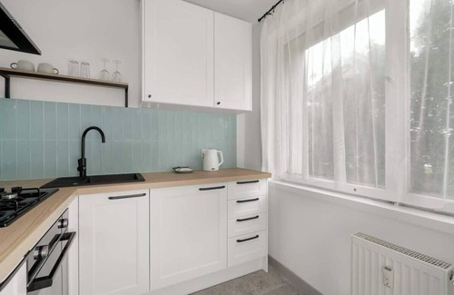 The building is located right next to a park, making it a great place to relax for lovers of greenery and those looking for a quiet neighborhood and an intimate atmosphere. The apartment's proximity to two parks (the Citadel and the Warta River), a basketball court, many playgrounds and Malta will surely appeal to all lovers of physical activity. It is an excellent choice for couples, as well as groups of friends traveling together. The neighborhood has no shortage of public transportation stops, cafes and restaurants - the nearest eateries can be reached in a 4-5 minute walk, as can a grocery store. There are also free public parking spaces in the estate. The charming market square with its beautiful architecture, the tennis court and the shopping center can be reached by car in about 10 minutes, while the route to the airport and the bowling alley takes 15-20 minutes. It takes 3-4 minutes to get to the train station and the city's riverside beach. It is also worth noting that the apartment is located in a quiet complex, even though it is not far from the Old Town.