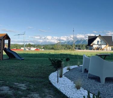 2.1 miles from Bania Thermal Baths in Białka Tatrzańska, Osada Kaniówka - domki pod stokiem z sauna offers accommodations with access to a sauna. This property offers access to a terrace, free private parking, and free Wifi. Guests can make use of the outdoor fireplace or the children's playground, or enjoy views of the mountain and garden. The units come with tiled floors and feature a fully equipped kitchen with a dishwasher, a dining area, a flat-screen TV with cable channels, and a shared bathroom with shower and a hair dryer. A microwave, a toaster, and fridge are also offered, as well as a coffee machine and a kettle. At the villa complex, units are equipped with bed linen and towels. For guests with children, the villa provides an indoor play area. Ski-to-door access and ski storage space are provided at Osada Kaniówka - domki pod stokiem z sauna, and guests can go skiing in the surrounding area. Zakopane Railway Station is 12 miles from the accommodation, while Zakopane Aqua Park is 13 miles from the property.