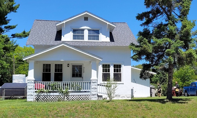 This is a very cute and comfy home that is located in a great location just a few blocks from downtown Oscoda, the beautiful Au Sable River, and incredible Lake Huron. It's decorated n a fun retro / vintage style and is very cozy. Includes new central air conditioning, washer and dryer, Wi-Fi, streaming television, and a private bonfire ring outside! Family-friendly and dog-friendly! Great for walking to river, downtown, the beach, and Lake Huron!