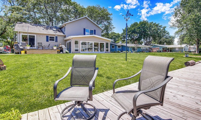 Embrace the lake lifestyle at this spacious 3-bedroom, 2.5-bath vacation rental in Oshkosh, WI! Nestled along a channel of Lake Winnebago, this home is the perfect choice for a large family gathering or group reunion. Cast your line off the dock and take the provided kayak out for a spin. When you’re ready to unwind, sip a glass of wine in the sunroom or take in the tranquil water views from the deck. End your evening with s’mores by the fire pit or a cozy movie night in the family room!