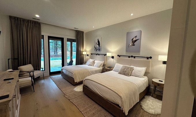 This charming cottage suite offers a cozy 1-bedroom retreat with 2 queen beds. Enjoy the excellent amenities like heating, AC, and WiFi. The bathroom features a dreamy shower, makeup mirror and hairdryer for your convenience. Includes a mini kitchen with Nepspresso pixie (pods, sugar/creamer provided) ice maker, microwave and mini-fridge. Experience the magic of our 500+ acre estate with multiple lakes, gorgeous live oaks and bountiful wildlife. A great place to unwind and call homebase while you're away. We hope you enjoy your stay!