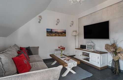 17 miles from Niedzica Castle in Jaworki, Ostoja Zaskalskie Apartament SZAFIR 74 m2 features accommodations with access to a sauna. This property offers a private pool, free Wifi, and free private parking. The property offers bike rental and features a garden and picnic area. Providing a balcony and mountain views, the spacious apartment includes 2 bedrooms, a living room, flat-screen TV, an equipped kitchen, and 1 bathroom with a shower. Towels and bed linen are featured in the apartment. There's also a seating area and a fireplace. Guests can make the most of the warm weather with the property's barbecue facilities. For guests with children, the apartment provides kids pool and outdoor play equipment. Skiing and cycling can be enjoyed nearby, while a ski equipment rental service, ski-to-door access and a ski pass sales point, are also available on-site. Treetop Walk is 26 miles from Ostoja Zaskalskie Apartament SZAFIR 74 m2, while Bania Thermal Baths is 30 miles away.