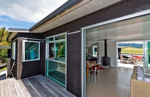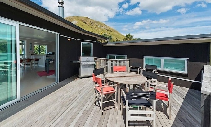 Oceanfront Otama is a relatively new, elevated 4 bedroom Otama holiday home, situated on a beachfront reserve section with great views of the sea and Coromandel Peninsula!