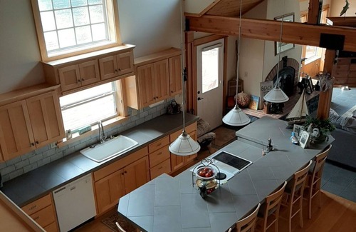 Otter Run Nehalem River - with a large two level deck overlooking the Nehalem River and a 5 person Hot Tub. The home is a 2200 sq ft, two level house, 3 bedrooms with beds for 8, two full baths, laundry room, and large open living and kitchen area. Two person kayak and two bicycles are also available. Dog friendly with dog and kid proof deck gate if needed. Central heat and air with two ceiling fans and wood burning fireplace. Fishermen bring your license, trout starting in May and our famous Chinook Salmon run late summer early fall. Complete home office set up - WiFi, printer, outlets for additional equipment, work desk with leather office chair.