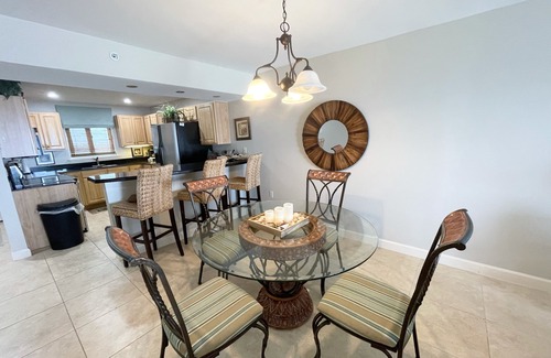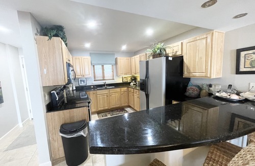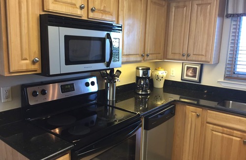 Our condo has been completely remodeled and refurnished including custom draperies, flat screen HD TV's are in both bedrooms and living room. DVD provided in living room also. Wireless internet is available throughout the unit. Beautifully decorated kitchen with full size stainless steel appliances and all kitchen essentials provided. For your convenience a full size washer and dryer are provided in the condo.