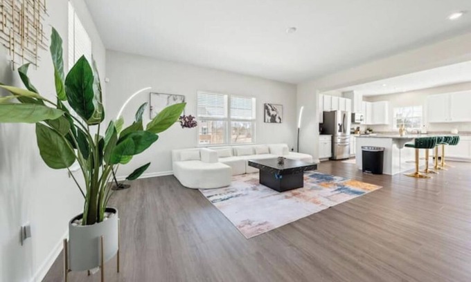 Step into this gorgeous, new modern townhome, designed for luxury, comfort, and relaxation. This spacious end-unit offers a quiet retreat in a peaceful neighborhood, perfect for families or groups looking for a stylish and serene stay.