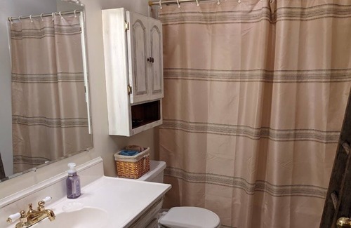 Bathroom #1: Main level, Full bathroom w/shower and tub, hair dryer