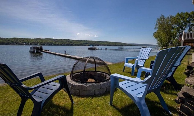 This house is a beautiful lake front property on the west side of conesus lake! 4 bedrooms, 2 Full Baths, pull out queen sofa couch in lower walk out area and 70’ lake frontage. Large open covered decks with in ground fire pit, kayaks and multiple lawn games! Great Vacation home!