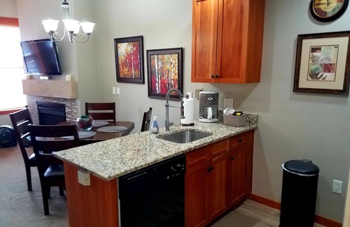 You simply can't get any closer to the Eagle chair lift. Our condo is on the same deck that Jacks Bar and grill is on and just steps away from the other restaurants. If you choose the grab and go option for dining we are just around the corner. There is no need to eat out in the cold. For those of you who plan to cook, the kitchen is fully equipped with pots, pans, utensils, dishes, bakeware, a blender, a toaster, Instant pot and a crockpot.