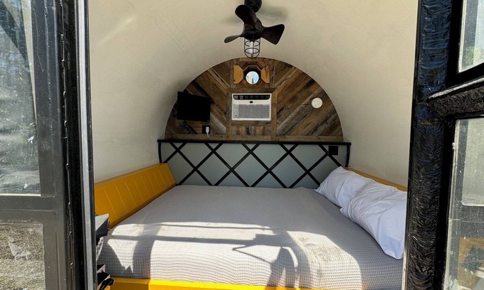 Experience a cozy retreat in our Tube rental, including a Coffee Maker,TV, WIFI, and a DETACHED bath house. Enjoy beautiful views and unwind. At Lockridge, we offer an array of amenities to enhance your stay, such as glamping options, RV spots, a picturesque wedding barn, a versatile conference room, and a small cafe. Discover the perfect blend of outdoor relaxation and comfort at our exquisite park. Visit LockridgePark.com