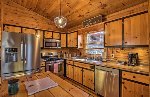 Mountainside bliss and outdoor adventures await at this 2-bedroom, 2-bathroom Blue Ridge vacation rental! This forest cabin features ample outdoor space with a furnished porch, 2-story deck, and a private covered hot tub. Head inside to a well-appointed interior complete with cabin-chic decor and a fully equipped kitchen. Hike the scenic trails around Amicalola Falls State Park, take the kids to Expedition: Bigfoot, explore Chattahoochee National Forest, and more from this Georgia home base!
