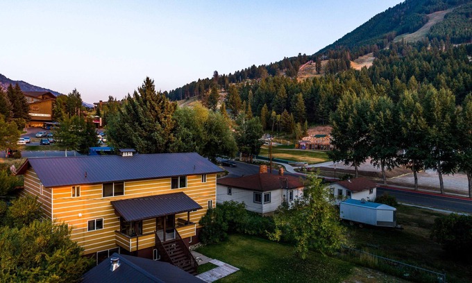 This charming garden-level condo, nestled at the base of Snow King Resort, offers a cozy retreat for a small group. Featuring one bedroom and one bathroom, this unit boasts a spacious open kitchen and living room. Enjoy a cookout with friends and family on the shared grill, unwind in the inviting communal green space outside, or simply take in the stunning mountain views.