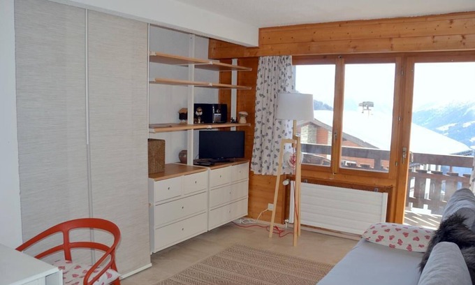 Outside : studio in Chandolin, for 1-2 persons, on the 2nd floor of an apartment house, elevator, s is located in Chandolin. Outside : studio in Chandolin, for 1-2 persons, on the 2nd floor of an apartment house, elevator, s provides accommodation, featuring Kitchen, Laundry, Wheelchair Accessible, among other amenities. This Apartment features Kitchen, Laundry, Wheelchair Accessible, to make your stay a comfortable one.