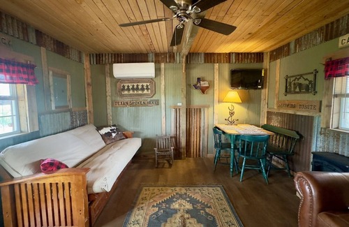AMENITIES - Beautiful views of the Hill Country with porches, outdoor areas with seating & firepit grills (wood not provided), WiFi, Smart TV (guests must bring their own login information), outdoor games, close to the Llano River & the Castell Store