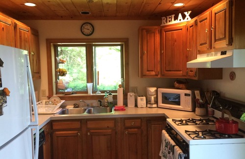 Four bedrooms completely furnished home. Two queens One double and Two twin beds. Linens and towels provided. Two bathrooms, living room, kitchen with dishwasher. Washer and dryer located in the spare room. Covered front porch with gas grill. Located on a private road. Member of beach club that includes rights to the beach. walk to the beach. 20 minutes from Lake George N.Y. and 30 minutes from Saratoga Springs N.Y. 15 Minutes to Lake Luzerne. Horseback riding, amusement parks, water parks, race track golf and white water rafting all available. cell phone service and wi-fi available. phone available for local calls only. Well equipped kitchen. to service 8.. Quiet and peaceful.