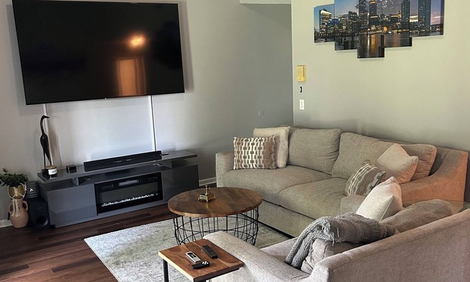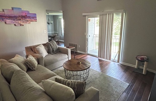 Welcome to home away home! This warm and spacious home features 2 bedrooms, a modern bathroom, and elegant high ceilings, ensuring a relaxed ambiance for your stay. As a primary residence turned AirBnB, my goal is to ensure that you feel right at home during your stay. That's why I take pride in offering a unique feature: a fully stocked fridge and pantry, thoughtfully curated with a delightful assortment of essentials and treats. Unwind with complimentary YouTube TV on a large 86" flat-screen, and enjoy the tranquility of our quiet neighborhood. Plus, we're delighted to welcome your furry companions, making it a perfect choice for an unforgettable home-away-from-home experience. Book your stay and immerse yourself in the cozy charm of our welcoming retreat!