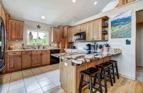 Enjoy this spacious Lodge perched on top of the ridge with incredible views! Plenty of places for the kids to play with 2 living rooms and a loft, dart board, gas firepit, BBQ with propane supplied, and an amazing sled hill in the winter! Master with private jacuzzi tub. Fully equipped kitchen, furnished w/ stainless steel appliances, & Keurig coffee maker. Washer/Dryer. Tons of opportunities nearby for mountain biking, hiking, and fishing and just 22 miles from Breckenridge.