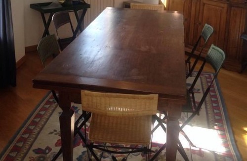 3 bedrooms, one double, one with two bunk beds, one with two single beds. Possibility 'of two additional seats in the dining room with sofa bed, 1 bath (jacuzzi) large living room with fireplace, with dining table for 12 people, large balcony with lounge chairs for sunbathing, magnificent mountain views