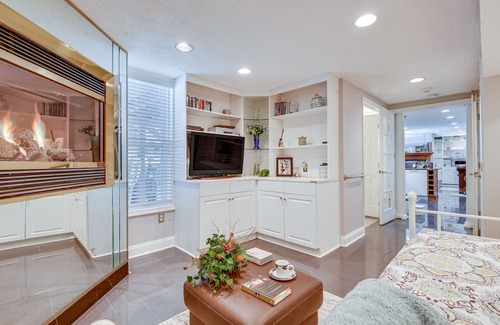 INDOOR LIVING: 2 fireplaces, books, dining table, walk-in closet, en-suite bathroom, walk-in shower
