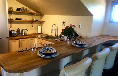 Dear Guests, With stunning views of the La Plata Mountains and the sweeping farmland, Owl's Nest is so sheltered and cozy on the inside. This is a romantic jewel box of comfort, with all the amenities of a boutique hotel. We love having a diversity of people come stay from all over the world. Located in the irrigated farm and ranch land on Florida Mesa, this location is only 15 minutes drive from Downtown Durango. Guests are always blown away by the solitude and beauty of the place so close to town. You will often hear Barn Owls hooting at night or see them swooping though the moonlight on the hunt! My husband and I have been renting vacation homes for 15 years now and this is our latest addition. We have really tried hard to make this one super special, and focused the remodel to get a unique and quality feeling. You can see all our places at Look at our reviews and see, we have lots of happy guests! Children and pets are more than welcome here. The orchards are so fun to just relax in for a picnic or outdoor nap, and you can go for a walk around the surrounding hay fields. We have cows, horses, chickens and one good farm dog. They are all overly friendly! The patio is complete with BBQ and furnishings for outdoor dinning or relaxed morning coffee. The entrance is a foyer with an office area and coat closet and then you go up the stairs to the main living area. A super comfortable king sized bed made of reclaimed telephone poles has a built in bookcase around the bottom with a small library. A reading nook for enjoying the quiet with a book. There is a twin bed also with a Tempurepedic Mattress that kids will love, tucked into one of the window alcoves. The kitchen is both adorable with open shelving and built in bar seating. Very usable with lots of great cookware to make a chef happy! Let me know if you have any questions about Owl’s Nest?