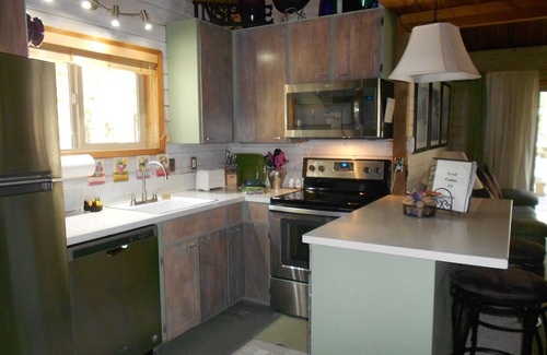 We have spent years transforming this place to what it is now and still constantly change things up- adding this and changing that. You will find very little that has not been updated in this cabin and will likely find changes of some type at every visit- sometimes big and other times small. Most recently, we added all new stainless steel appliances, new Milgard windows and a new stainless steel gas bbq. TC2 has served as a creative outlet for us in many ways with Robb being a skilled craftsman and I the type that was doing the HGTV thing long before HGTV existed. We love to share this place with others who enjoy having more than the run-of-the-mill hotel type atmosphere. Again and again we hear that TC2 feels like a real home for which we are so grateful. This is exactly the level of hospitality we wish to give each and every guest on each and every visit. We are here for you!
