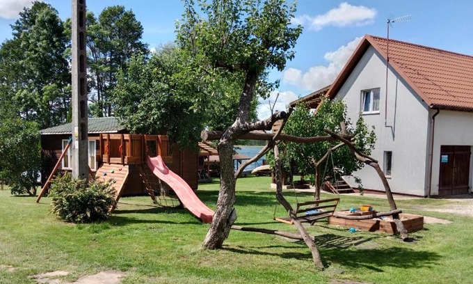 Owocowe Wakacje - Apartament nad jeziorem is located in Mikołajki, just 26 miles from Święta Lipka Sanctuary and 2.7 miles from Tropikana Aqua Park. This beachfront property offers access to free Wifi and free private parking. On clear days, guests can head outside to enjoy the apartment's outdoor fireplace. Featuring a balcony and lake views, the apartment includes 2 bedrooms, a living room, flat-screen TV, an equipped kitchenette, and 1 bathroom with a bath. Towels and bed linen are available in the apartment. The accommodation is non-smoking. A mini-market is available at the apartment. For guests with children, the apartment features outdoor play equipment. Owocowe Wakacje - Apartament nad jeziorem has both a sun terrace and garden where you can relax, along with a private beach area. Sailors' Village is 3.6 miles from the accommodation, while Townhall of Mragowo is 12 miles from the property. Olsztyn-Mazury Airport is 43 miles away.
